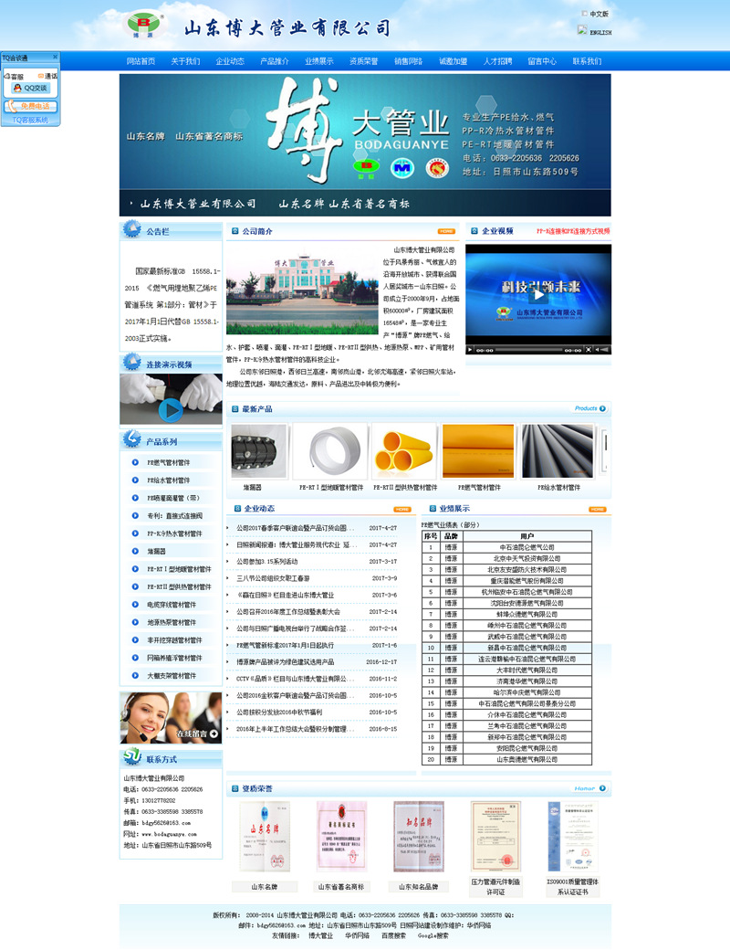 公司是中國(guó)城市燃?xì)鈪f(xié)會(huì)、中國(guó)塑料加工工業(yè)協(xié)會(huì)塑料管道專(zhuān)業(yè)委員會(huì)會(huì)員單位。公司被評(píng)為全國(guó)誠(chéng)信守法民營(yíng)企業(yè)、全國(guó)重質(zhì)量守信譽(yù)先進(jìn)單位、山東省高新技術(shù)企業(yè)、山東省重合同守信用企業(yè)、山東省消費(fèi)者信得過(guò)單位、日照市優(yōu)秀民營(yíng)科技企業(yè)、日照市AAA信用企業(yè)、日照市行業(yè)領(lǐng)軍品牌、日照市質(zhì)量管理先進(jìn)企業(yè)。公司生產(chǎn)的“博源”牌系列產(chǎn)品榮獲“山東名牌”、“山東著名商標(biāo)”“知名品牌”稱(chēng)號(hào)。
