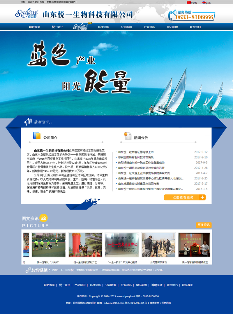 山東悅一生物科技有限公司位于國(guó)家可持續(xù)發(fā)展先進(jìn)示范區(qū)、山東半島藍(lán)色經(jīng)濟(jì)發(fā)展的先導(dǎo)區(qū)──日照國(guó)際海洋城,是日照市政府 “2015年百項(xiàng)重點(diǎn)工業(yè)項(xiàng)目”,山東省“2016年重點(diǎn)建設(shè)項(xiàng)目”。項(xiàng)目占地92.47畝,計(jì)劃總投資3.2億元,年加工處理10000噸魚(yú)骨聯(lián)產(chǎn)魚(yú)骨素及衍生化產(chǎn)品。投產(chǎn)后,可新增銷(xiāo)售收入2.06億元/年,新增利潤(rùn)7454.22萬(wàn)元,新增稅費(fèi)1118萬(wàn)元。